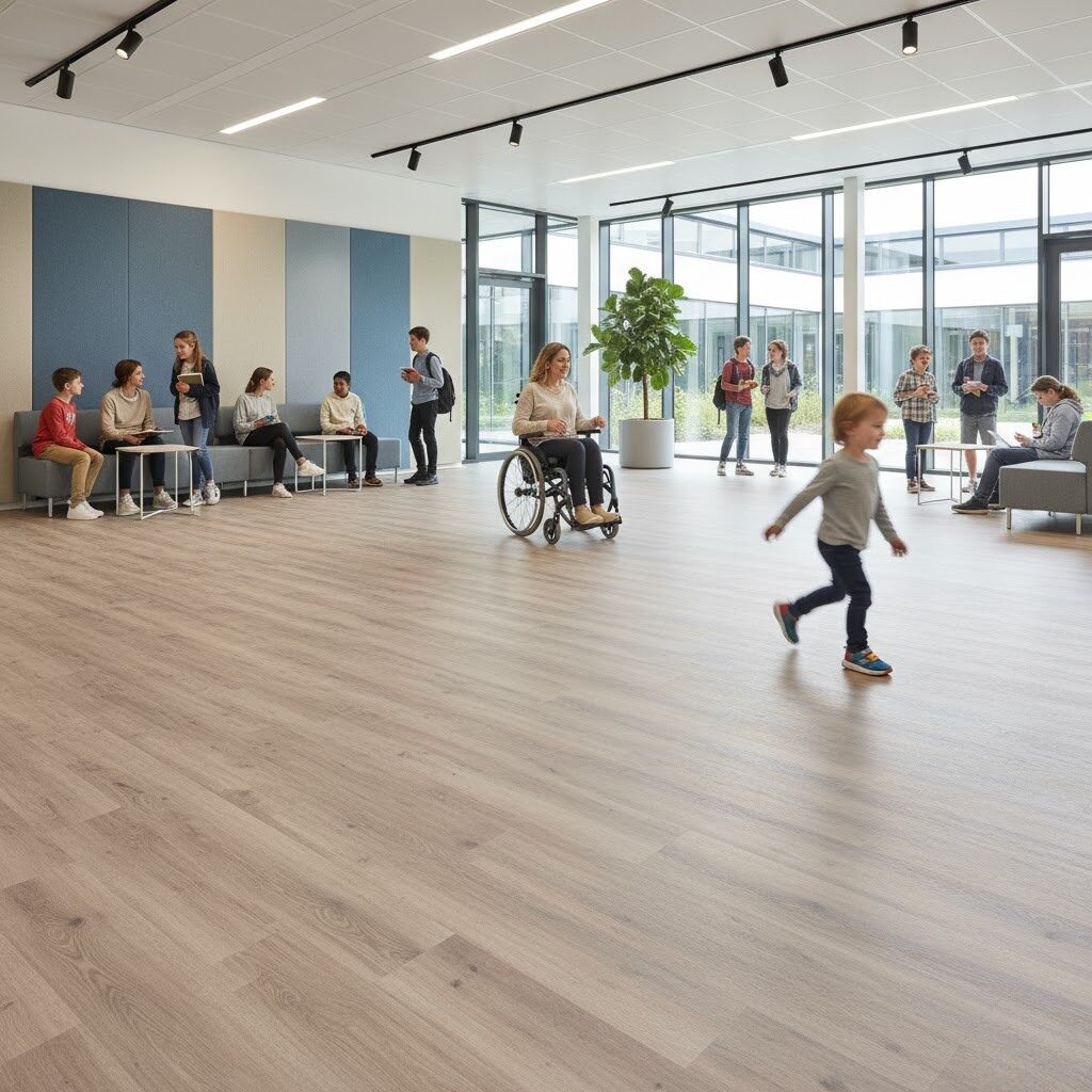 • Centros educativos, sanitarios o espacios de tránsito constante que requieren suelos higiénicos y duraderos.